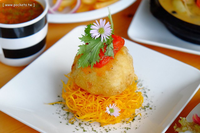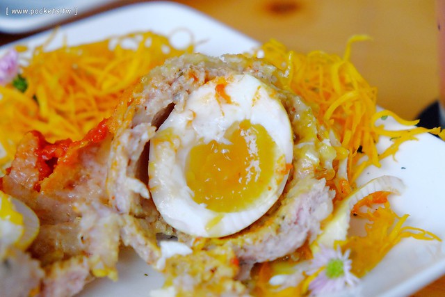 因為一剖開,裡面有一顆糖心蛋耶!是不是很有創意?(但是這個鳥巢被我切的很噁心,還被同行的朋友唸了一下…吼~我就不會解剖學咩!
