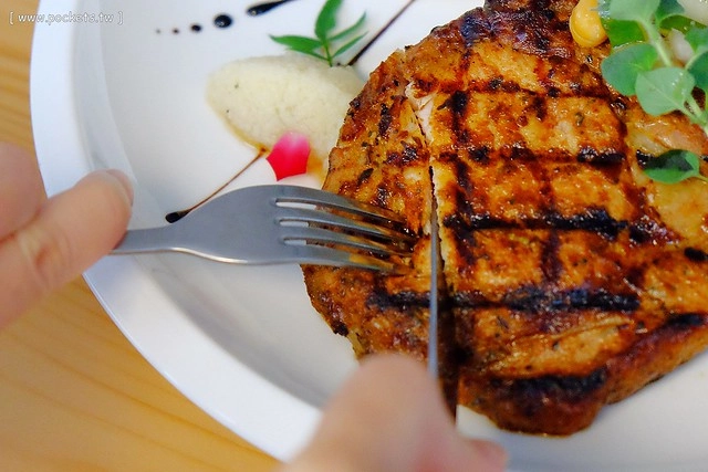 豬肋排因為不同的部份有不同的口感,看起來好像會很柴,其實吃起來還好,帶有嚼勁又有炭烤過的焦香氣…