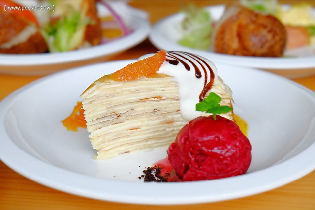 千層蛋糕 – $140元,旁邊還有搭配一球蔓越莓雪絡哦!千層蛋糕算是比較大眾款的口味,而且價格也在合理範圍…