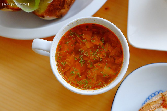 湯品 – 餐前如果可以喝上一杯熱湯是最暖胃的了,湯頭是比較偏清淡一些,微微的酸勁帶點番茄蔬菜的香氣…