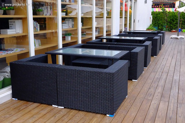 嘎嗶惦餐廳的旁邊有戶外的用餐座位區,不過夏天天氣真的很熱,坐這邊恐怕會變成烤鴨…