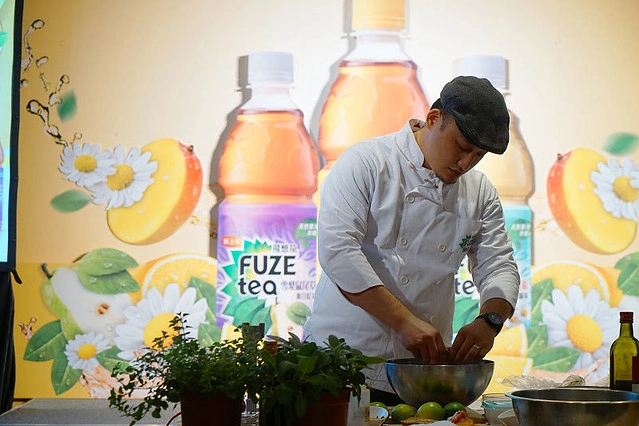 主辦單位超棒,請了一個廚師現場指導,而且很用心的研究怎樣的餐點搭配這次的FUZE Tea…