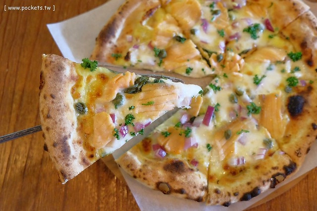 每一片披薩上面的鮭魚都很多,鮭魚並不會因為高溫窯烤後而流失水份,魚肉還很嫩口,而且沒有我害怕的魚腥味,所以我也敢吃捏…
