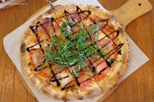 芝麻葉帕瑪森火腿披薩 – $320元,我喜歡這款口味的呈色,所謂紅配綠真美麗呀!
