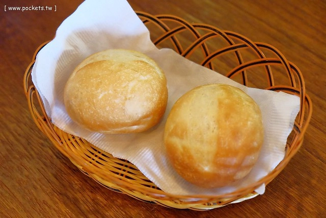 法式脆皮麵包 – 這個應該是小圓法,剛送上桌的時候還熱呼呼的,外皮很酥脆,裡面滿軟嫩的…