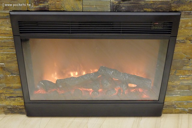 電視在牆上,下面有火爐耶!