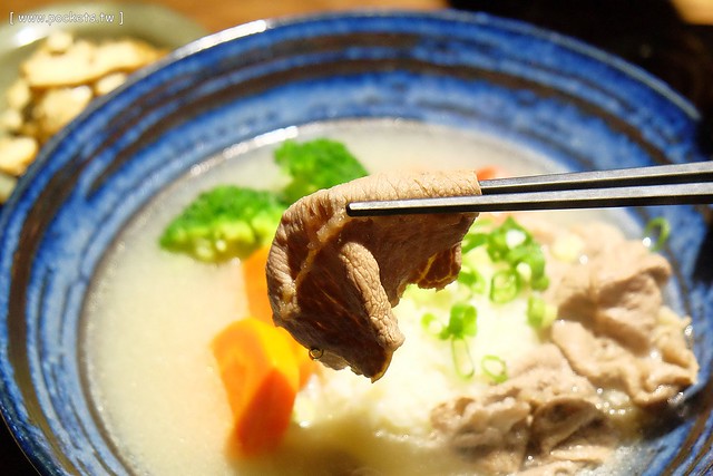 不管是牛肉或是湯頭,和泡飯的表現都差不多,清爽帶有香氣,好吃卻不油膩,這碗也是由朋友的小孩解決了…