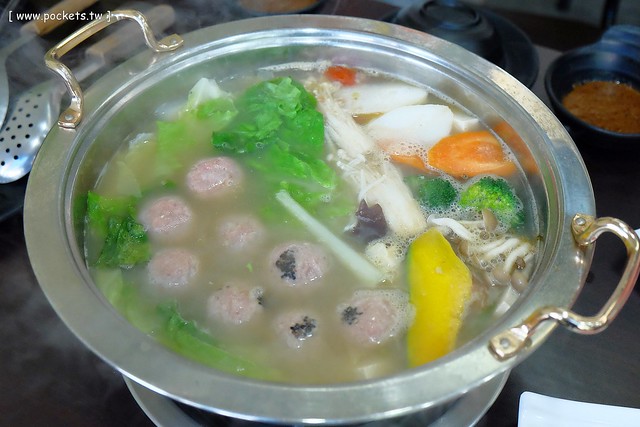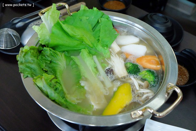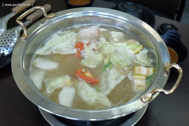 剛送上桌的湯頭是有些清淡的,帶點蔬果甜味和香氣,這種鍋特別適合煮海鮮和涮肉類…
