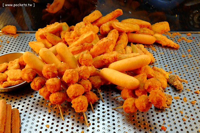 炸物起鍋之後會在攤子上保溫,不過通常放不了多久就被買光了…