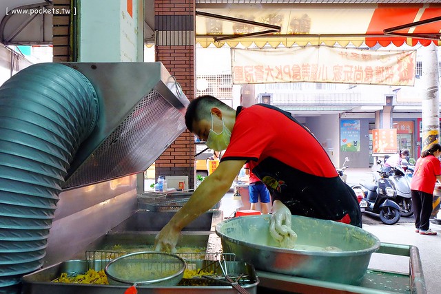 然後老闆這樣一塊一塊放下去也不怕被油噴到,我都不知道閃多遠了…(鏡頭拉長就好…XD)