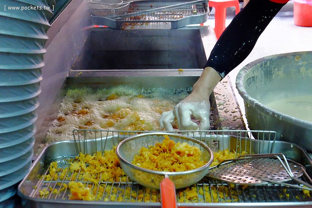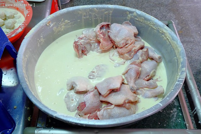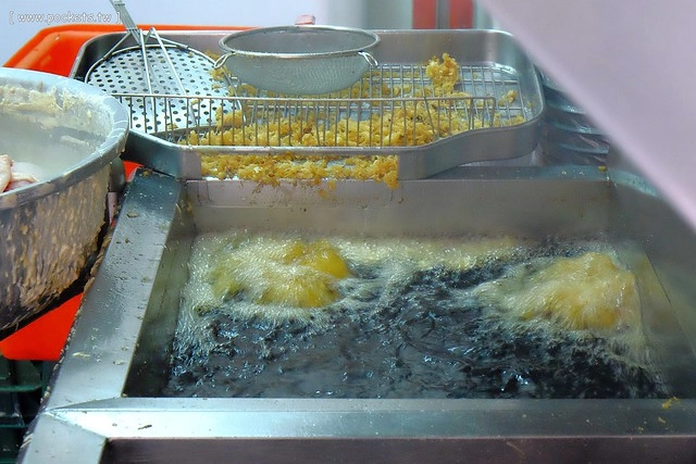 這天因為有帶相機,等待的空檔就和老闆聊聊天,不過老闆一下子裏麵衣、一下子油炸,其實也不怎麼有空理我…><“
