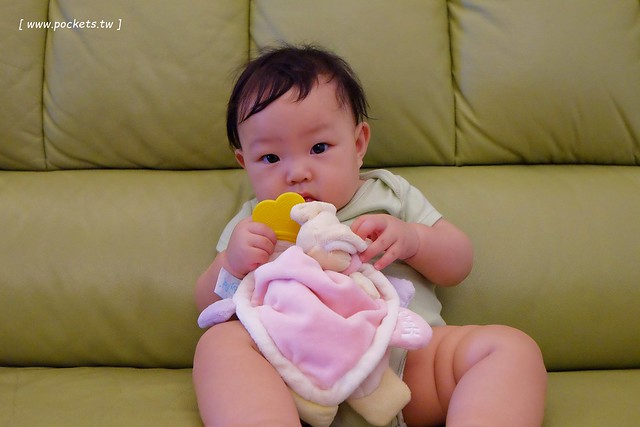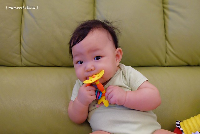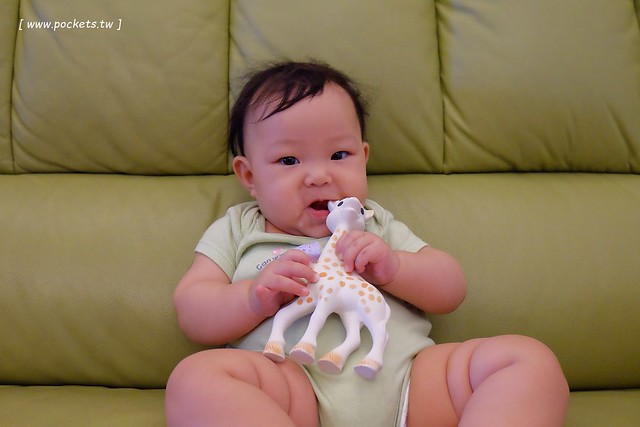 從小櫻桃還不太會”握”東西的時候,我就丟蘇菲給她把玩,因為蘇菲長頸鹿的觸感很舒服,而且有一種淡淡的天然香氣,會讓寶寶覺得有吸引力…