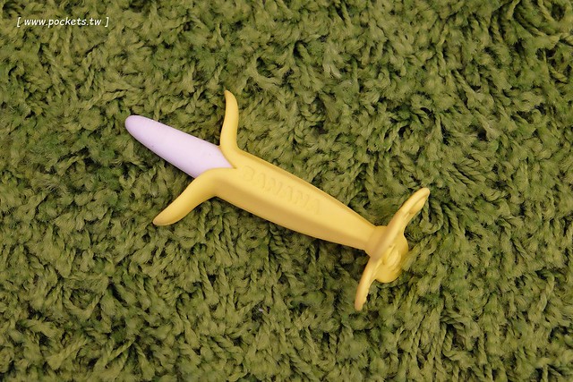 這個香蕉的尾端跟上面那個貝親小花很類似,香蕉白色的部份頭有做一些凹凸的處理,而且它的香蕉皮和香蕉肉是不同的口感,所以這個如果小櫻桃有耐心好好坐著的時候,一個可以把玩很久哦!