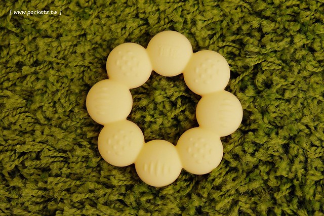 而且因為甜甜圈上面有一粒粒小小凸狀處,對於寶寶的長牙時間有磨牙齦的作用…