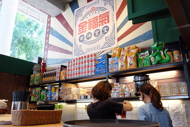 《金福氣南洋食堂》外觀真的很亮眼,十足的復古風情,有點像是麻六甲那一帶建築特色…
