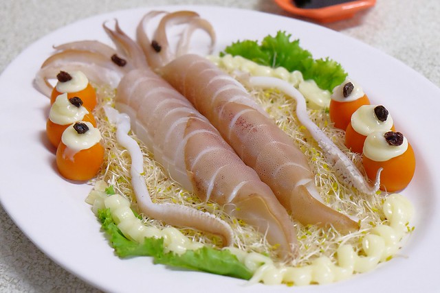 水晶小卷 – $420元,小卷只有簡單的川燙過而已,外觀還帶著透明的色澤,口感吃起來脆脆的,很鮮甜好吃…旁邊還有美乃滋,但是我覺得單吃就很好吃了!