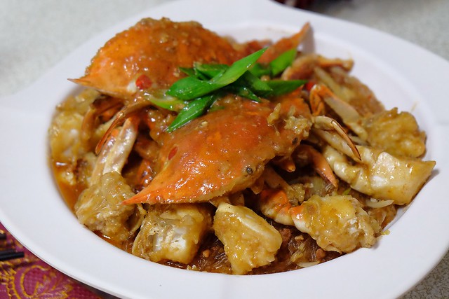 三點蟹粉絲煲 – $550元,蟹肉很肥美,鹹、甜、辣交錯,是重口味的一道菜呀!這個時節正好是吃蟹的時節,所以一群人吃的很過癮…