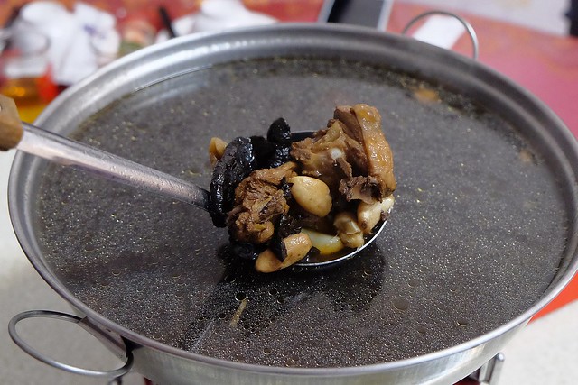 老菜脯燉雞湯 – $600元,黑黑的那個是老菜脯哦!我一度還以為它是某種中藥類呢!旁邊褐的那個是年輕的菜脯,店家說:因為只放老菜脯的話,很多人會以為這鍋怎麼沒菜脯?所以才會放年輕的菜脯進去驗明正身一下啦!
