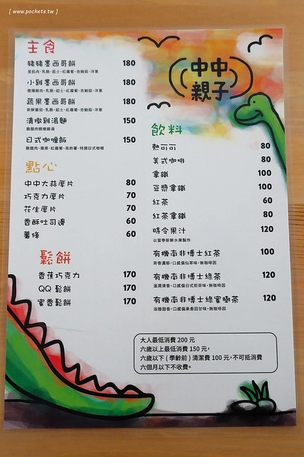 餐點主要以輕食類和飲品為主,價格不算貴,不過有低消哦!