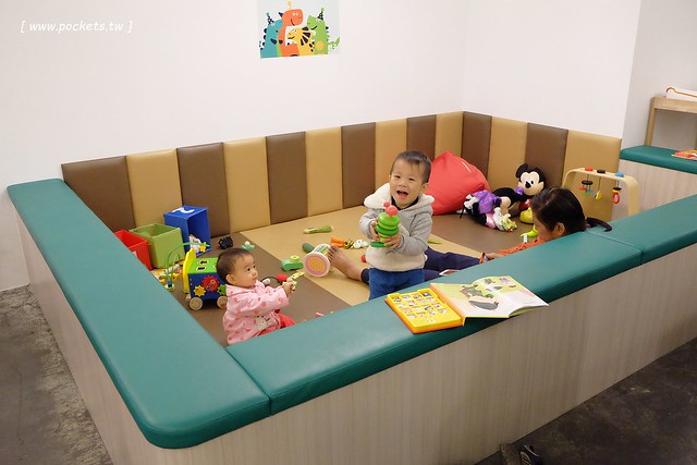 一樓的室內有一個遊戲區,這邊是專為1歲半以下的寶寶設計的哦!