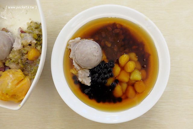 配料除了湯圓之外,還有紅豆和珍珠,而且碗底居然還藏著一球芋泥耶!