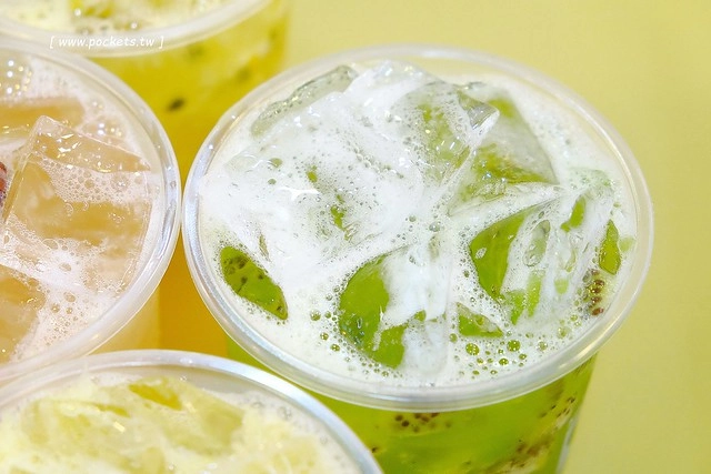 他們家使用的是綠色品種的奇異果,喝起來酸度比較明顯一點,很有止渴解膩的效果…