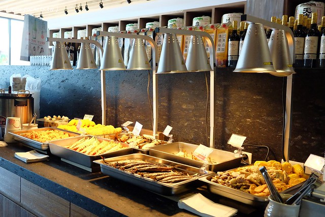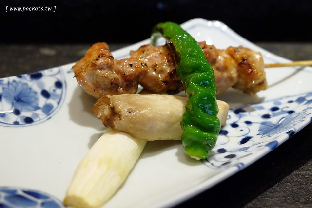 烤物 – 雞肉串,搭配烤杏鮑菇、青龍辣椒和皎白筍,皎白筍很脆口又很鮮甜…