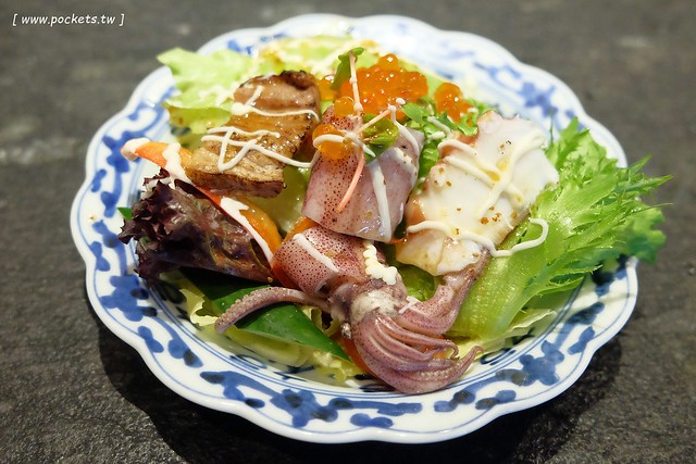 沙拉 – 和$480元的鮨享套餐差不多,有多了透抽和烤豬肉…