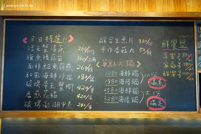 火鍋區在二樓,因為訂不到位子我們當然就沒上樓了…小黑板上面有清楚的餐點和食材售價,其實…不算便宜!聽身邊吃過的朋友說:「海鮮還滿新鮮的,只是比較貴…」