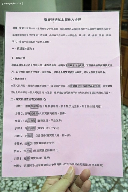 接著把抓周的東西都放地上,其實說明書上面是教說要放扇型,但是凱文說放圓型也OK啦!(妳爸說了算…