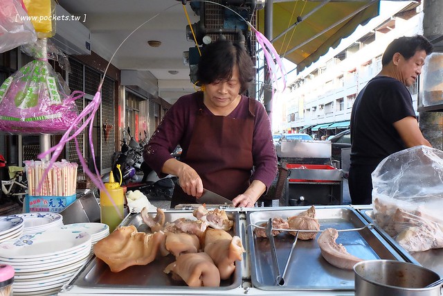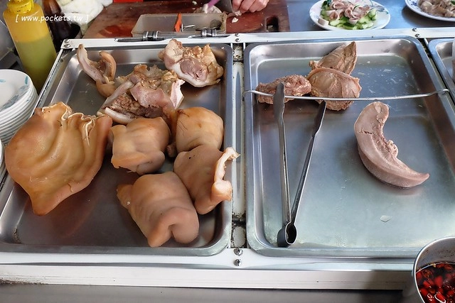 店裡除了麵食類之外就是架上的豬雜類小菜了,不管是豬耳朵、豬頭皮還是豬舌都處理的乾乾淨淨的…