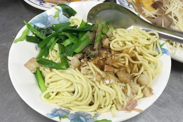 使用的是細麵,再加上韭菜和豆芽,還有比較大塊一點的肉燥和油蔥酥…