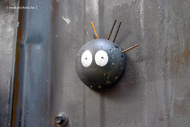 龍貓的耳朵是用路邊常見的安全椎做成的,然後鼻子是用廢鐵皮做的哦!