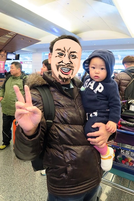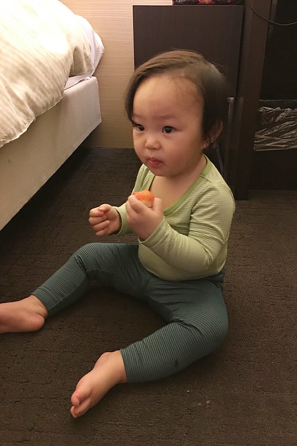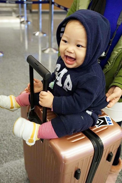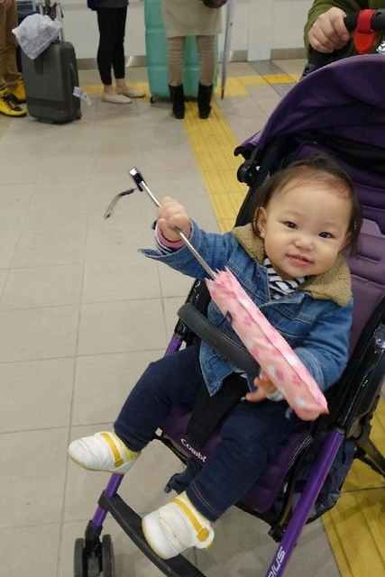 原本還奢望小櫻桃可以一路從台灣睡到日本,誰知道揹帶拆下來之後她就起床了…(嗚~失算!