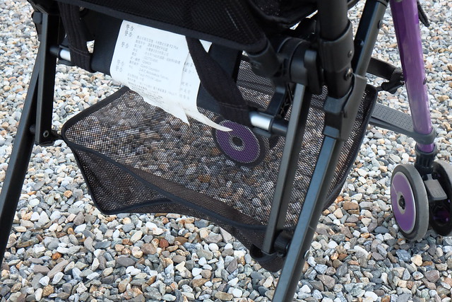 推車下面的置物籃,我們就用來放揹巾和遮雨罩,很方便的…