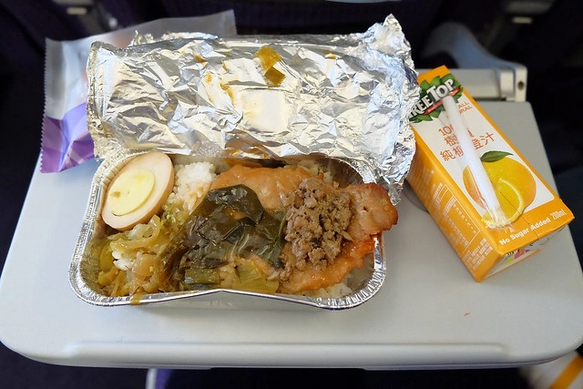 訂位的時候,我們有訂了兩份機上餐,有含甜點和飲料,其實價錢還可以接受啦!排骨便當比雞肉便好吃…