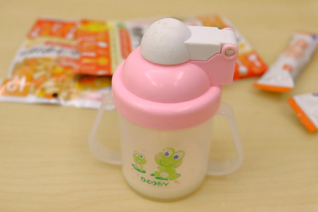 像我們每天的行程都不一定,吃飯的時間不一定,吃的東西也不一定,所以看狀況決定要不要打開保溫瓶給小櫻桃吃(備而不用)…