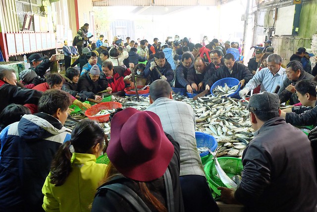 其實是漁獲的拍買,下午2點一到,老闆喊:「開賣」之後,大家就開始搶購…