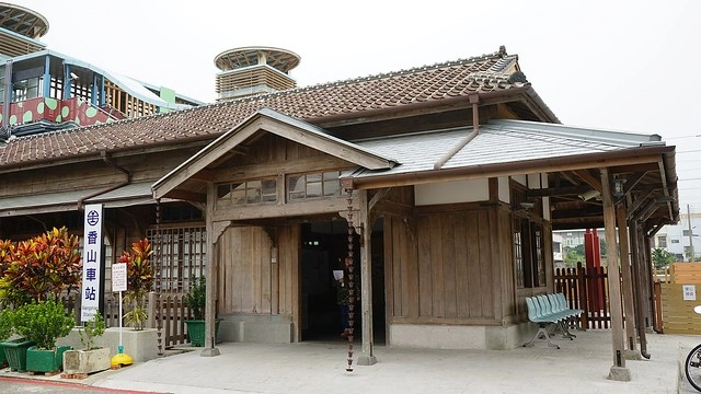 香山火車站於1928年建造而成,是一棟傳統的日式驛站,也是目前全台唯一使用阿里山檜木建造而成的火車站。