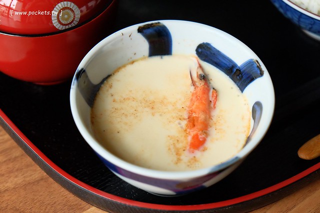 蒸蛋放比較久才吃,所以軟嫩度稍微差了點,有點可惜,不過看到碗裡面有一大隻蝦子還是覺得很有誠意呀!