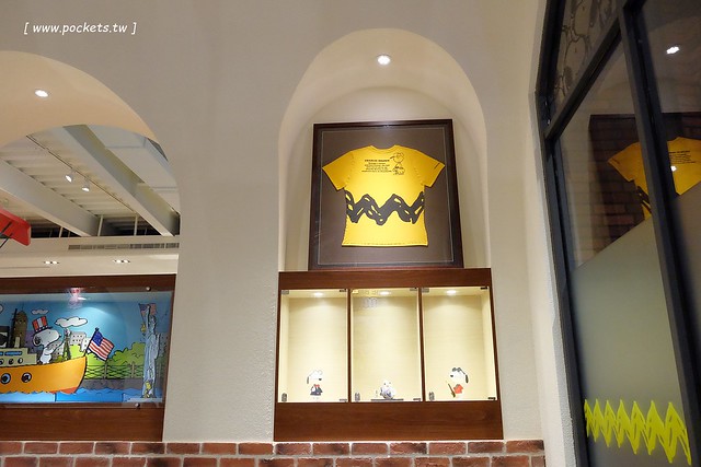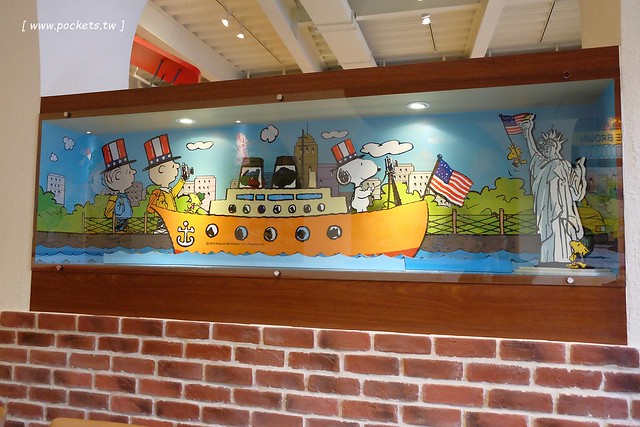 牆上是史努比的櫥窗設景…