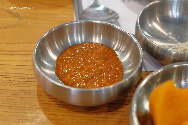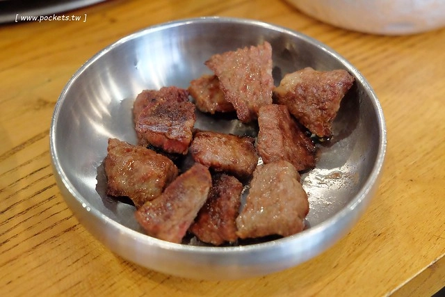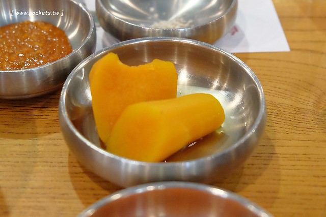以烤肉來說,姜虎東肉顯得比較秀珍型,和我在韓國吃過的一般韓國烤肉不太一樣,我吃的那種是走豪邁粗礦路線型的,還要一邊烤一邊自已用剪刀剪那種呀!