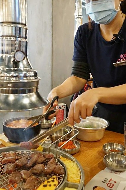2. 很難吃→如果是自已烤的話,我們多半不會掌握火候,所以會烤焦,就沒那麼好吃,以我們這天全程代烤來說,牛肉不好吃,豬肉好吃…不過其實在韓國的話,服務人員幾乎都是沒有代烤的哦!