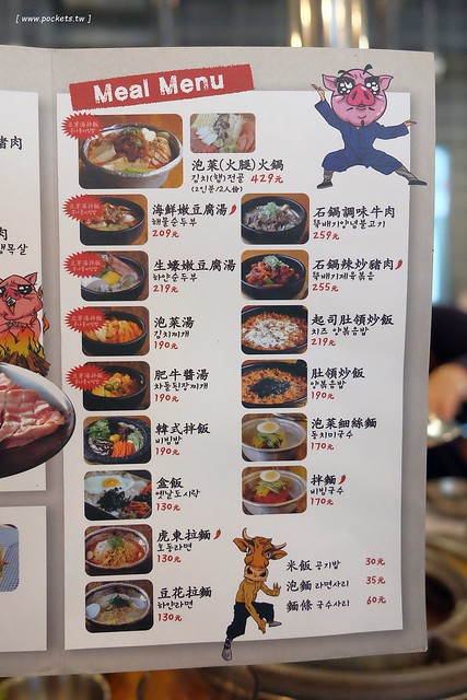Menu…除了牛肉之外,其他的餐點並不會特別貴,大概是和台灣其他韓式料理的價位差不多而已…