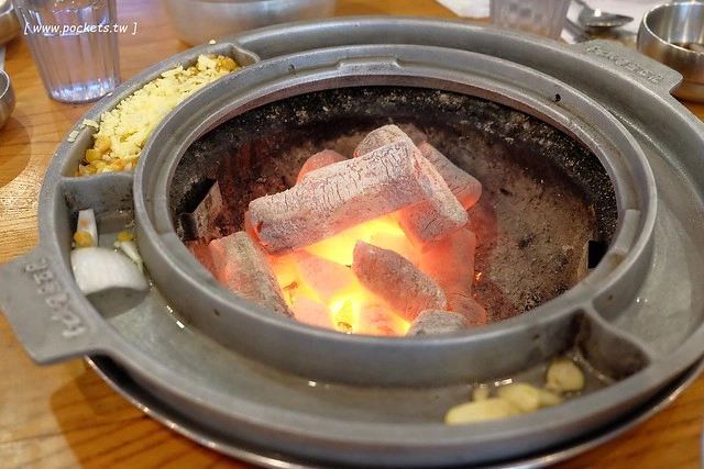 這裡使用的是炭火哦!剛坐下之後服務人員就會先上木炭了…