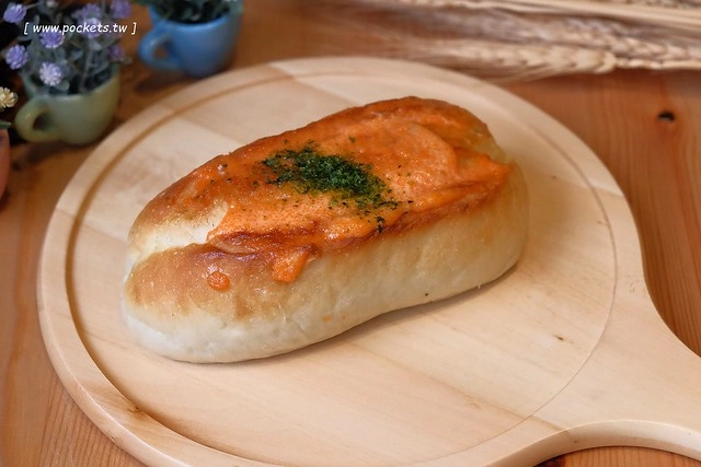 不但表層有明太子,內餡也有明太子醬,吃起來會有波波的口感…