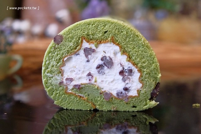 蛋糕體吃起來是溼潤綿密帶點紮實的口感,有因為抹茶的關係又多了點香氣,內餡的奶油質地很輕柔,口味甜而不膩,搭配紅豆入口,所以多了點沙沙的口感,口感很有層次…