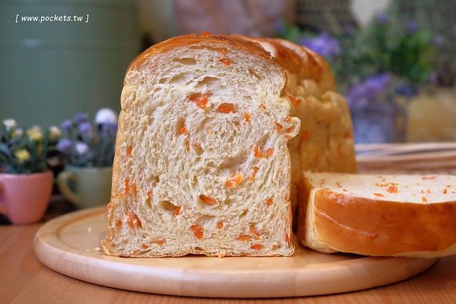 吐司的口感很軟嫩,因為紅蘿蔔的關係所以多了一點蔬菜的香氣和甜味,這款很養生健康,所以很放心的給家裡的小孩子吃…