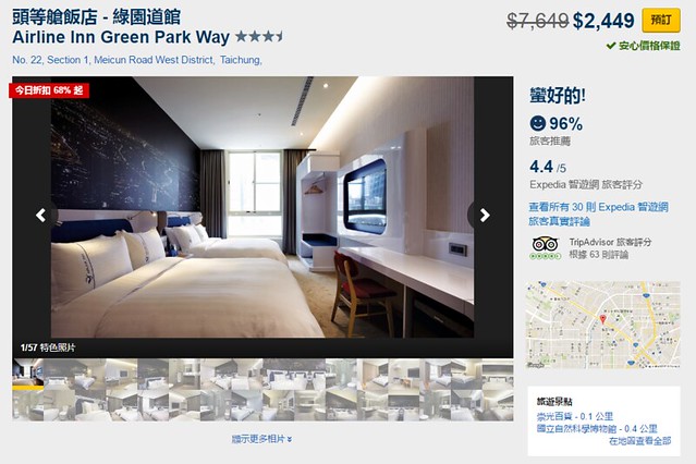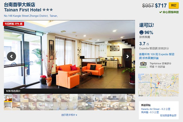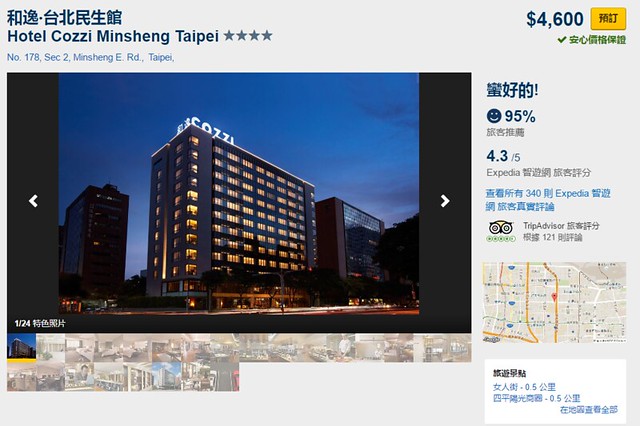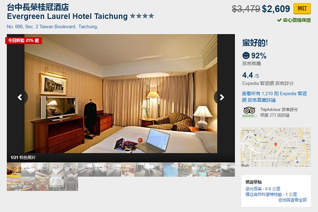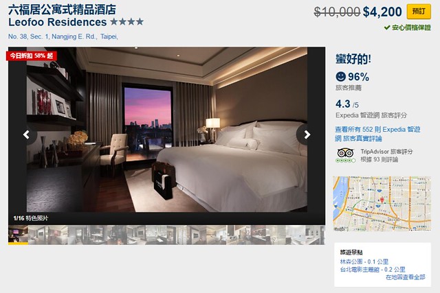 如果可以搶到特價優惠的話,一間房間居然不到仟元就可以訂的到,Expedia智遊網上高達96%的滿意度,可見CP值之高…