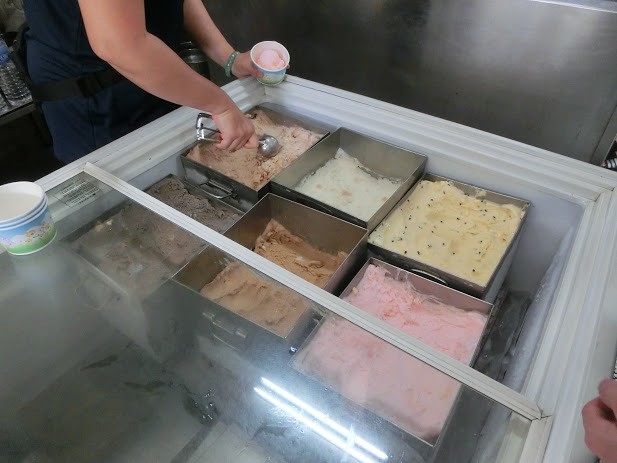 除了甘蔗冰是店裡的招牌外,也有許多傳統的古早味冰淇淋,使用純天然的材料製作成的,有牛奶、巧克力、桑葚等口味…